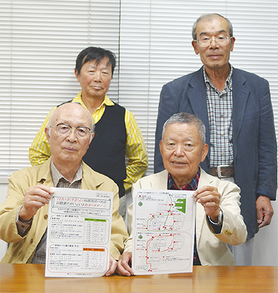 市道路局との調査・検討、バス会社2社との協議を進めてきたが、難航したのはバス停の設置場所だった。長谷川会長は「個人宅からは騒音や安全性の問題を危惧する声が多く、マンションや駐車場等のそばに設置することでようやく決定した」と話す。「周回バスの運行により、住民の行動範囲も広がるのでは」と期待を寄せるのは、リーダーの鈴木清文さん。利用実績により、本格運行の可否を判断するため、「できるだけ多くの方にご利用いただきたい」と同会は呼びかける。