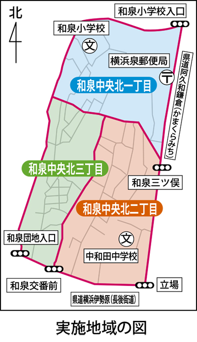 今回実施された第5次地区は、中田町の一部を含む0.539平方キロメートルの範囲で、和泉中央北1丁目〜3丁目に変更される。道路を境界とし、和泉小学校入口交差点・立場交差点・和泉団地入口交差点・和泉小学校そばを結ぶ地域、約3300世帯(うち約200が事業所)が対象。