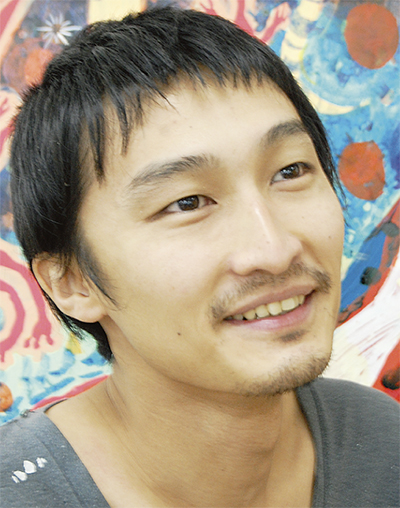 ○…美術展の会場の窓から注ぐ日差しに向かい、成長していく植物。その植物は、テープや泥などで壁に描かれた絵画。展示期間が終わると作品自体を消してしまう独特な作風。「絵描き」。職業を問われるとそう答えている。芸術活動だけで生活ができる人は少ないが、現在、全国を飛び回っている一人。本人曰く、「絵を描いて生活をしている」のではなく、「絵を描くために生活をしている」のだ。