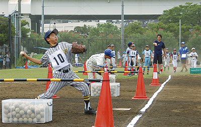両日ともピッチャーとキャッチャー部門、野手部門が設けられ、30m走や遠投による基礎体力、ポジション別守備とティーバッティングによる実技が行われた。