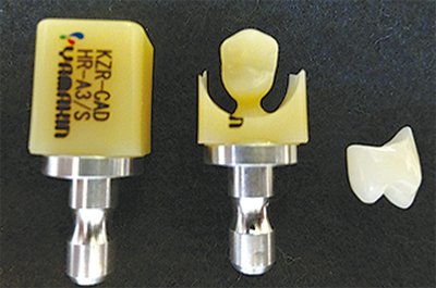 診療報酬の改定により、昨年4月からハイブリッドセラミックスブロックを使用した小臼歯(前から4、5番目の歯)のCAD/CAM冠修復が保険適用となった。