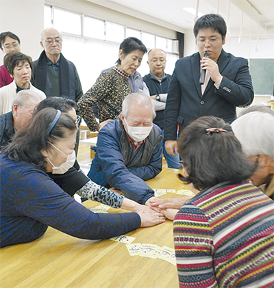 「一休さんっ」――。2月21日、さまざまな年代の人がトランプ遊びに興じているのは、川上小学校の一室だ。集まっているのは、川上北小学校地域防災拠点運営委員会のメンバーや同校の教員ら。楽しげな声が教室に響くが、彼らはただ遊んでいるのではない。防災訓練の一環として「防災トランプ」で遊びながら、防災について考え、情報共有をしているのだ。