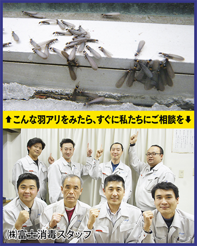 ▽歩くと床がふかふか▽ふすまや扉の立てつけが悪くなった▽5年以上シロアリの消毒をしていない――。「そんな家はご注意を」と同社専務取締役の重岡雅也さんは呼びかける。