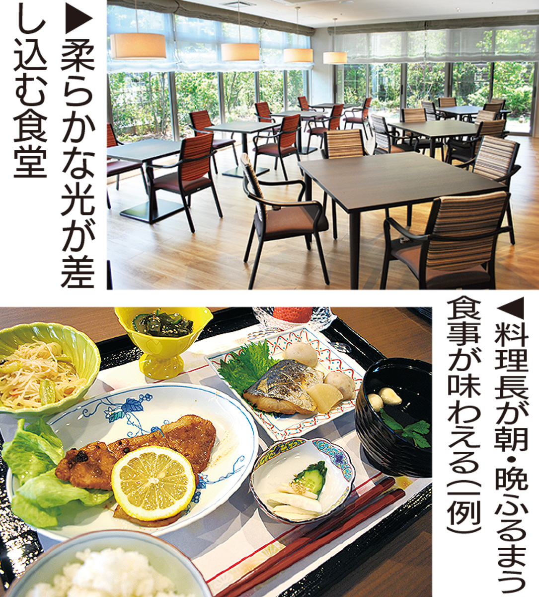先日初めて行われた「お披露目内覧会」には、周辺に住まう多数の入居希望者が駆け付けた。人気の理由は、いわゆる高齢者施設のイメージを払しょくするマンションの佇まいに、一人でも夫婦でも暮らせる広々とした室内空間。希望者へは、日曜日以外の朝と夜、料理長の作る食事が食べられるほか、日中はリビングアテンダー、夜間は警備会社が緊急対応するなど、安心も守られている。