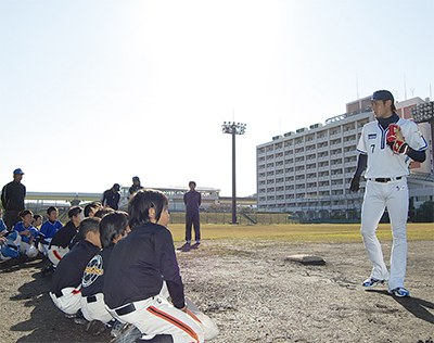 指導にあたったのは、横浜高校卒業生で新生・横浜DeNAベイスターズで活躍する石川雄洋選手、鈴木尚典コーチ、片平保彦コーチ。参加した小学生31人は、ベースランニングやキャッチボール、守備練習、バッティング指導など、約2時間半にわたり真剣な面持ちで取り組んだ。同クラブの米山泰広会長は、「プロから直接学べるので、子どもたちも得るものが大きいと思う。ぜひ今後も続けていきたい」と話した。