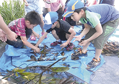 この取り組みは、並木地区と関東学院大学中津研究室(中津秀之准教授)が、舟だまりを活用して地域の交流を進めようと3年前に始めたもの。現在は「これからの並木を創る会・水辺部会」に引き継がれている。「これまでに地域の大人の協力を得ることができた。今度は子どもたちに団地の中に小さな海があることを伝えたい」と中津准教授。「豊かな海があることを知って地元に愛着や誇りを持ち、大人になった時にここで子育てしたいと思えるようなまちづくりができたら」と話した。