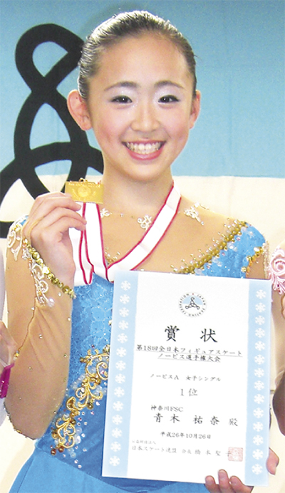 富岡中学校1年の青木祐奈さん(12)が10月26日、大阪府で行われた「第18回全日本フィギュアスケートノービス選手権大会」で悲願の優勝を掴んだ。あさって22日からは、階級を一つあげた全日本ジュニアに挑む。