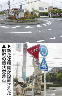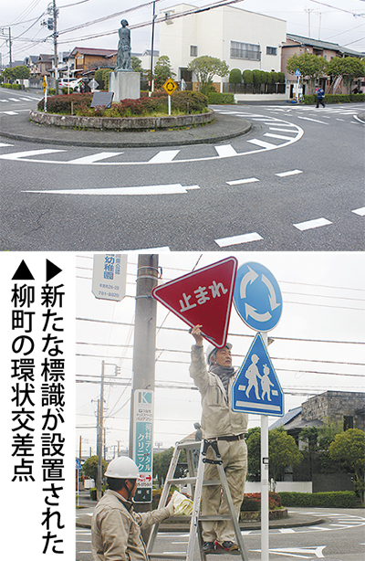 柳町の住宅地中央にある円形の交差点で3月20日から、新しい交通ルールの適用が始まった。新ルールで規制される交差点は「環状交差点(ラウンドアバウト)」と呼ばれる。昨年9月の改正道路交通法の施行に伴い、神奈川県内で初めて導入された。
