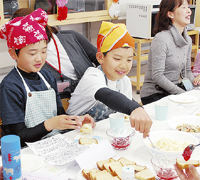 能見台小学校(山崎信也校長)4年3組の児童は3月11日、保護者らを招き、2分の1成人となる10年間の感謝を伝える会を開いた。ふるまわれたのは「横浜産にこだわった」サンドウィッチ。この日のために1年をかけて準備した成果が形になった。