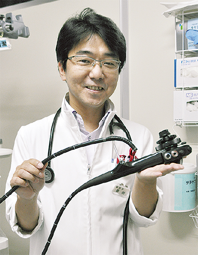 「成人の死因の1位はがんで、中でも胃がん・大腸がんは、それぞれ2位、3位。40代以降は胃・大腸がんの発生率が極端に増える。まずは定期的な検診を受けてほしい」と話す長田医師。胃・大腸がんの初期は自覚症状がまったくないため、その多くが検診で発見される。特に内視鏡検査はミリ単位の早期がんまで見つけることが可能だ。金沢病院は系列の検診クリニックと連携し、早期発見に力を注ぐ。「(内視鏡は)敷居が高いと思われがちだが、今は一般的になっています」