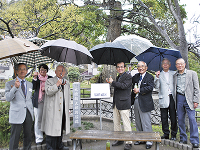 大橋新太郎は関東大震災で倒壊した称名寺や金沢文庫の復興に尽力した人物。1905年ごろから井伊直安の別荘、海岸尼寺跡(現金沢町第2公園含む)および近隣を買い受け、別荘を建設した。しかし、60年代半ばに造成された団地の住民の中で、これを知る人はごくわずか。「まずは、知ってもらわないと」と考え、ホームページや自治会便りへの掲載や、講演会の開催などで活動の輪を広げていった。そうした努力が実り、協賛は「想定外の大成功」となる212口に。太田代表は「この価値ある歴史を子どもたちに伝えていければ」と期待を込める。