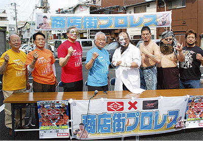 (社)横浜市商店街総連合会(岡野誠一会長)は5月21日、地元横浜のプロレス団体「大日本プロレス」=拠点・都筑区=とタッグを組み、六角橋商店街(石川清貴会長)=神奈川区=の人気恒例イベント「商店街プロレス」を新たに市内7ヵ所で行うことを発表した。