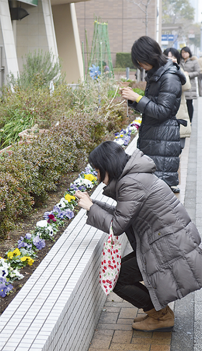 前半の座学で、画質やピント、ホワイトバランスなどカメラの基本的な機能や設定について学習したあとは、カメラを手に外へ出て、実際に撮影へ。雨上がりで水滴のついた花壇の花や空、街並みなどを思い思いの構図でカメラに収めた。