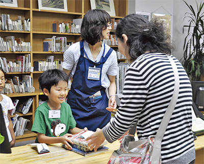 当日は15人の子どもたちが参加。本の貸し出しや返却、返却された本を本棚に戻す作業などを体験した。