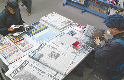 磯子図書館では、3月11日から19日まで、東日本大震災を記録した新聞記事を展示する特別展が開催されている。