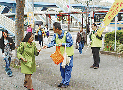 磯子事務所の岡守副所長は「区内では歩きたばこやポイ捨ての苦情が増えている。清潔で安全なまちづくりを進めるために、ぜひマナーを守ってほしい」と話した。
