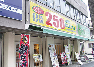同店は、生きづらさや働くことに困難を抱える若者たちへの就労、ジョブトレーニングの場として現在運営。食堂の営業は11時から20時だが、同窓口は24時間体制が執られ、概ね3人が相談員として常駐する。