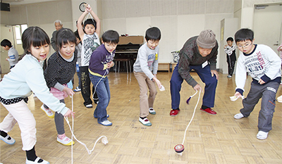 こま回しを楽しんだ男児は「練習してうまく回せるようになった」と誇らしげ。宮原会長は「私たちも子どもと交流することで元気をもらえる」と話したほか、会員の土屋清敬さんも「子どもには昔の遊びが新鮮に映る」と手応えを話していた。一方、丸山校長は「核家族化で、児童がおじいちゃん、おばあちゃんとふれあう機会は少なくなった。昔遊びを通じて、高齢者へ尊敬の念を持ってもらえれば」と感想を語っていた。