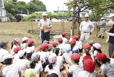 同小の児童は種まきを終え、「緊張しました。学校でも育ててみたい」「ひまわりの花でいっぱいにしたい」と感想。大塚会長は7月26日に行われる「ひまわりフェスタ」にふれながら「去年よりも多くの人が来てくれたら」と語ったほか、飯田さんは「地域から楽しみにされているし、子どもたちにとってもいい経験となる」と話していた。