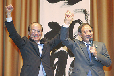 当日は菅義偉内閣官房長官や渡邉美樹参議院議員、桐生秀昭県議会議員が駆け付けたほか、支持者など750人あまりが出席するなど盛況だった。
