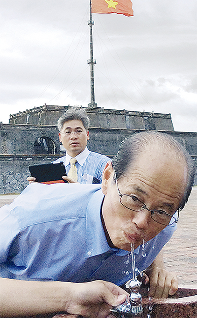 横浜市水道局は2003年から国際協力機構(JICA)と連携し、同国フエ省水道公社に技術協力を続けています。09年にはその成果としてフエ省全域で「安全な水宣言」が出され、蛇口から直接水道水を飲めるようになりました=左写真。水道水を飲める地域はアジアでは珍しく、約100万人の住民がその恩恵を受けているということです。