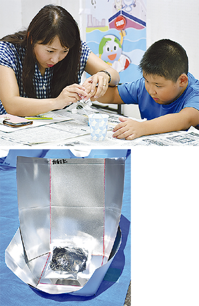 夏の太陽光を使い、電気やガスを使わずに調理や点灯を試みる「太陽のパワーを体感!環境学習講座〜暑さを逆手にとった夏休み自由研究」が6日、港南区役所別棟で行われた。