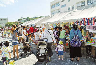 主催者によると、この日の人出は3000人以上。地元中学校の吹奏楽部や音楽消防隊が演奏を響かせ、子ども達がダンスを披露する催しがあった。映画の上映があったほか、校庭には飲食の模擬店や子ども向けの縁日がずらりと並び、子どもたちは思い思いに夏のひと時を楽しんでいた。