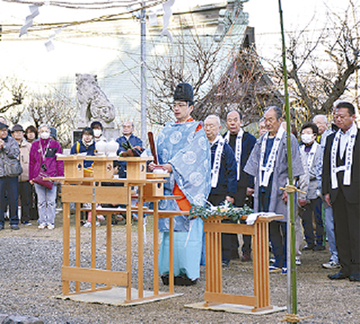 上永谷にある「永谷天満宮」(川辺浩司宮司)で14日、恒例の「さいと焼き」が行われた。さいと焼きは正月のしめ縄飾りや門松を焚き上げで焼くことで、出迎えた「歳神様」を炎とともに見送る行事で、全国各地で行われている。同神社では氏子会を中心に毎年準備を行っているという。