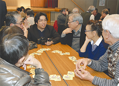 この日は「神奈川わかものシンクタンク」代表理事の福本塁さんを講師に、参加者5〜6人のグループによる防災トランプを実施した。防災トランプは通常のトランプルールを基本に、地震や津波など52種類の題から、どのような危険が起こるかを話し合うもの。この日は「193(いっきゅうさん)」と、ばば抜きのゲームに挑戦。参加者はゲームに白熱しながら、危険を感じた時の体験談などを語り、盛り上がっていた。