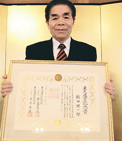中区本牧在住の鶴田理一郎さん(73歳)が4月18日、東久邇宮記念賞を受章した。