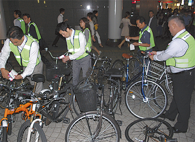 駅周辺には市が設置する約3500台分の駐輪場があるが、定期利用でほぼ埋まっている状態で、一時利用を含め、全く足りていないのが現状だ。市によると、禁止区域の放置自転車は97年をピークに減少傾向にあるものの、現在でも一日平均1千台を超える。また最近は、通勤・通学以外にも、買い物などで商店街の通りなどに駐輪するケースが増え、歩行者の通行の妨げとなっている。