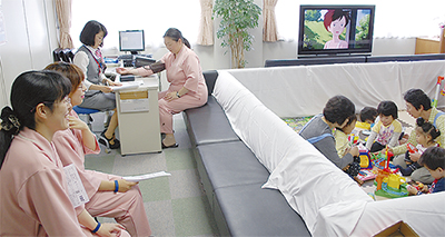 当日は未就園児を中心とした子連れの母親約20人が参加。病院の一角に設置された保育スペースに子どもを預け、笑顔で健診を受ける姿が見られた。