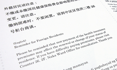 同課では、外国籍の居住者に対して「口頭説明では理解が十分得られない」として、法律で加入が定められていることや未納はビザの更新・変更に影響が出る可能性があることなど、中国語や英語、タガログ語などで説明を書面化。結果、トラブル回避に一役買うとともに、窓口対応の時間短縮にもつながったという。