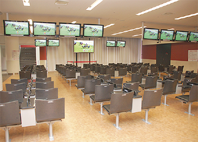 新築棟は鉄筋コンクリート造の地上6階、地下1階。各フロアにはドリンクホルダーとテーブルがついた椅子が設置され(計478席)、モニターでレースの様子を確認できる。この充実した座席数は全国で3例目。また、1階エントランスにはラグジュアリーな女性トイレも設置され、誰もが楽しめる環境を整えた。
