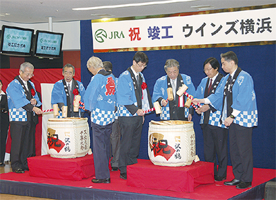 12月19日のJRAウインズ横浜(田辺彰所長)グランドオープンに先駆け17日、同施設で竣工式典が行われた。日本中央競馬会をはじめ施工会社の関係者、また地元住民らが出席し新築棟の完成を祝った。