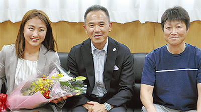 今給黎教諭は、「『立野でラグビーをやりたい』という強い意志を持ち、入学当初から”日本代表”の目標を語っていた」と、その実行力を称賛。高3の時の担任だった来代(きただい)裕子教諭=下写真右=は、高校時代の山口選手について「新入生代表あいさつも務める優秀な生徒だった」と語る。
