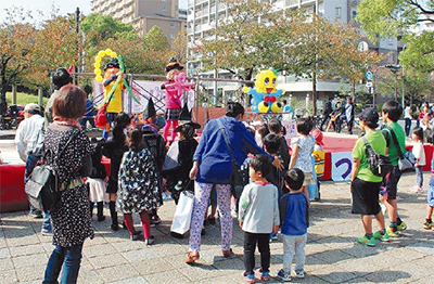 ポレポレまつりが初めて開催されたのは1997年10月。中区内の障害者団体のつながりを深めたいと考えていた渡部専枝郎さん(地域活動支援センターはだしの邑施設長)らが中心となり、96年12月に中区障害者団体連絡会を設立した(今年10月現在で74団体が加盟)。また、八王子市で毎年開催されている多文化・環境共生型野外イベント『みんなちがってみんないい』に参加し感銘を受け、中区でも障害者団体が中心となった同様のイベントを模索。そして、作り上げる過程で互いを知り、イベントを通して地域とのつながりを育みたいという渡部さんらの思いから開催にこぎ着けた。イベント名は、当時はだしの邑で働いていた職員が命名。スワヒリ語で「のんびり」「ゆっくり」の意味だ。