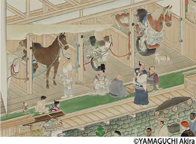 馬の博物館=中区根岸台=では開館40周年を記念して、所蔵名品展「馬の美術150選―山口晃『厩圖(うまやず)2016』完成披露―」を開催している。10月29日まで。