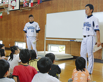 プロ野球選手を間近で見た児童は「格好良かった」「試合を観に行きたい」と興奮気味に話していた。