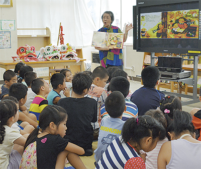 同校には中国やフィリピンなど、13カ国の児童が通っている。読書会は外国に古くから伝わる民話などを読み聞かせることで、児童がその国の文化や言葉を知り、親しみ感じてもらおうと初めて実施された。