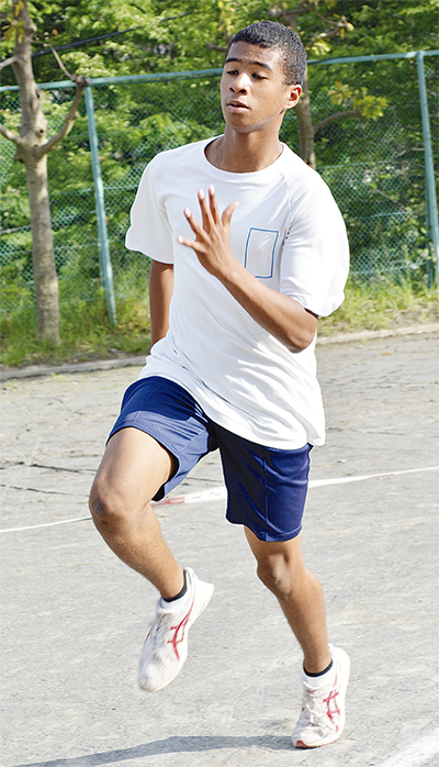 ガーナ人の父と日本人の母を持つイブラヒム君。小学5年で陸上を始め、「記録が伸びることが面白かった」と夢中になった。長身だが線が細く、1年前の体重は68kg。顧問の佐藤広貴教諭は「昨年は故障が多かった」という。