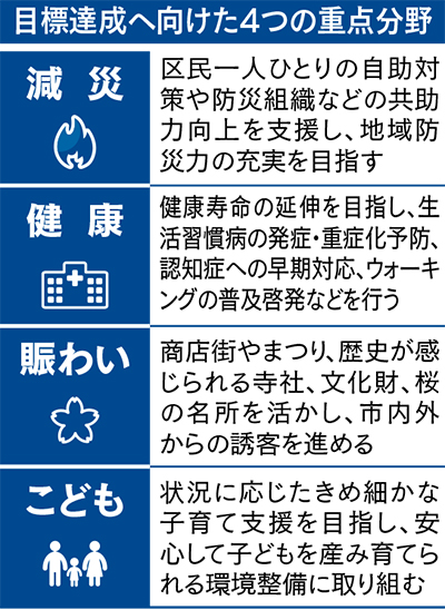 南区の今年度の目標や取り組みを示す運営方針が5月20日に公表された。この中では「減災」「健康」「賑わい」「こども」の4つを昨年度と同じく重点分野に位置付け、各課の連携や区と地域の連携を強めながら事業に取り組む方向性が示された。