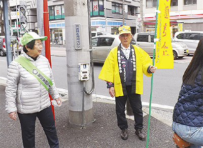 春の全国交通安全運動期間(4月6日〜15日)に合わせ、南交通安全協会(置田光男会長)主催の交通事故死者撲滅を目指すキャンペーンが4月10日、井土ヶ谷交差点付近で行われた。
