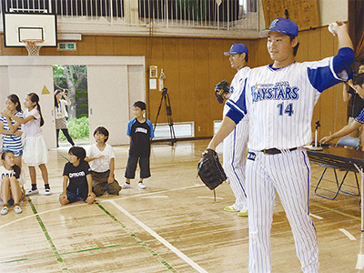 DeNAの選手会が市教育委員会事務局らの協力を得て行う「星に願いを」プロジェクト。選手が県内の小学校で夢を持つことの大切さなどを伝えている。