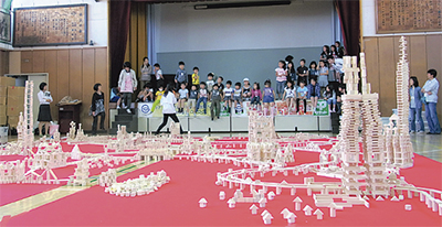 今月14日、権太坂小で積み木遊びのワークショップ『森の積み木広場』が開かれた。同小学校で活動する「放課後キッズクラブ」の子どもたちを対象に、公益財団法人オイスカ(中野良子代表)が行ったもの。