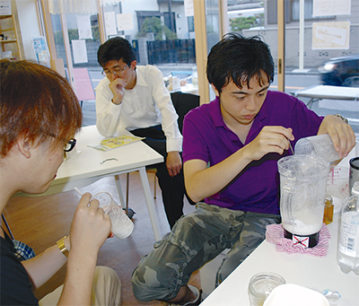今回開発が企画されたのは、同商品を使ったドリンク。学生らと協力し、8月初旬には試飲会が開かれた。当日は、牛乳やサイダー、珍しいものでは大根など、使用する材料や比率を変えながら何度も試飲。はちみつの甘さを活かせるよう、意見を出し合って改良を重ねていた。完成した新商品は、8月23日(火)と24日(水)に和田町商店街で開かれる「和田地蔵祭り」で売り出される。