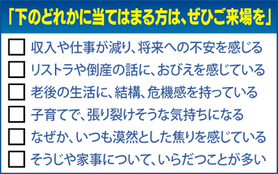 主催する同支部には最近、リストラなどによる人生の不安を訴える相談者が増えており、「地域の人の不安を和らげたい」と講演会を企画。同支部は「地域が幸せになること、その一助になれば」と話している。