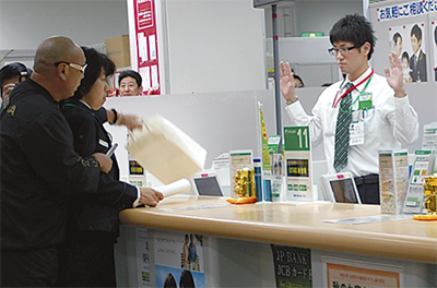 「株式会社ゆうちょ銀行保土ケ谷店」(川辺町)で11月10日、模擬強盗訓練が行われた。