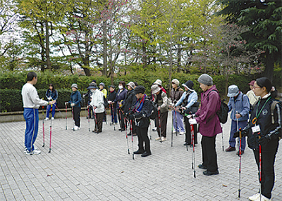 区内に7つある地域ケアプラザの合同事業「ノルディックウォーキング」が11月15日に行われた。