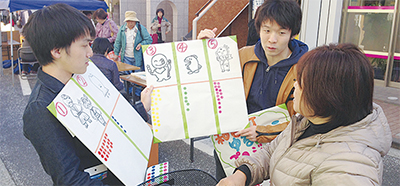 これらのアイデアを学生が5つに絞り、11月に開催された商店街のイベント内で投票。その結果、159票中53票を獲得した和田在住の涌井陽一さんのイラストが選ばれた。涌井さんは、「地蔵が皆で共通している和田町のイメージなのだと思う」とキャラクターについて語った。